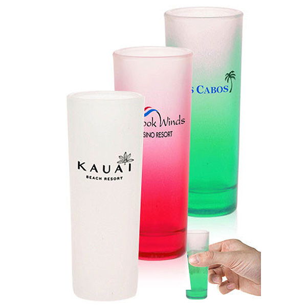 These 2 oz. frosted cordial shooter glasses feature a thick protruding base with a sheer rim and a soft, velvet-like cylindrical design. Made from high-quality, imported material, they’re perfect for promoting restaurants, pubs, sporting events and parties. Have your company logo or design imprinted on the surface for a customized souvenir that is bound to impress. These colorful favors can also be used for weddings, anniversaries, birthday parties or college themed events!