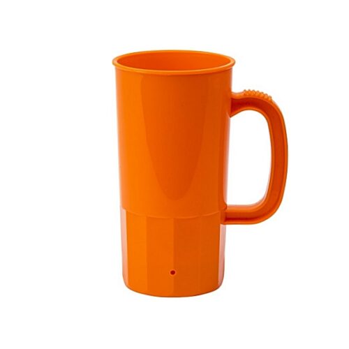 This perfectly sized 22 oz plastic beer mug gives lots of imprint area to proudly display your custom logo imprint Pricing included a 1 color imprint on 1 or both sides, using the same or different art on each side, at no additional charge.