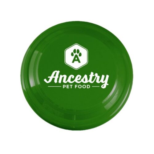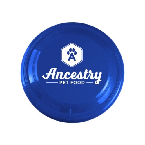 ideal for dogs, this pooch safe 9″ diameter flyer is a full 1 inch deep and is molded in using a dog friendly high-impact co-polymer polypropylene. Molded in the USA with pricing including a 1 color imprint or optional full color digital imprint (12 working day production, rush not available.)