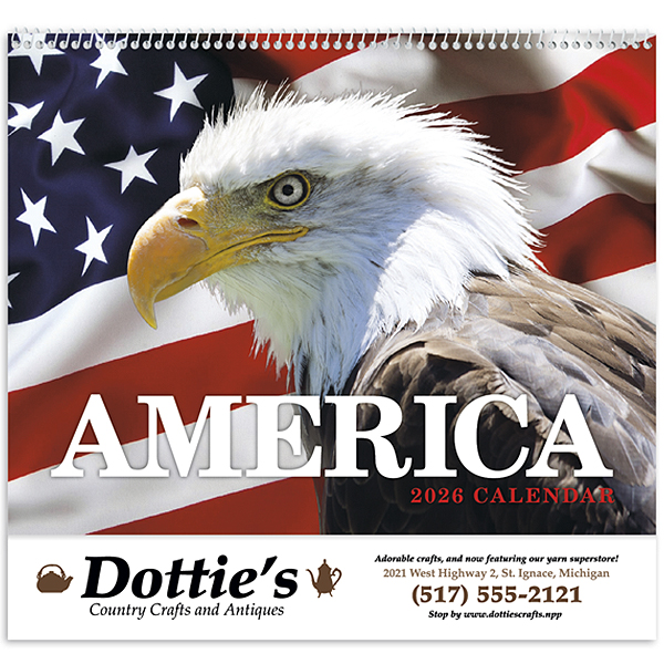 Celebrate the nation’s beauty with the America Appointment Calendar, capturing breathtaking scenes from across the United States. Organize your year with ample space for appointments, reminders, and events. An ideal way to keep your business in view, your business name, slogan, message, or logo is featured on each page, offering brand visibility year-round. Spiral-bound for easy flipping and includes holidays and moon phases. This 13 month calendar includes December on the back mount. Also available in stapled style.