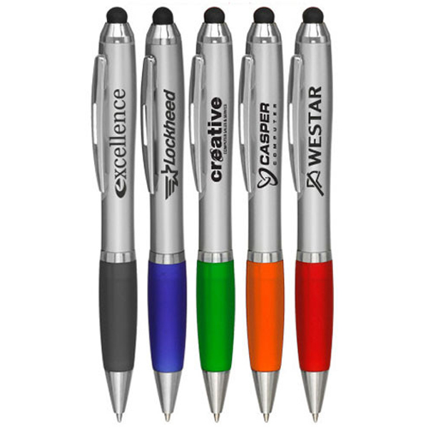 Assorted Color Stylus Ballpoint Pens bring the fun, the function, and the flair. These vibrant two-in-one pens are equal parts practical and playful — write on paper, tap on screens, and make your brand part of every moment. Featuring an ergonomic barrel with a soft colored rubber grip for extra comfort, each pen includes a responsive stylus on the opposite end for easy navigation on touch-screen devices.