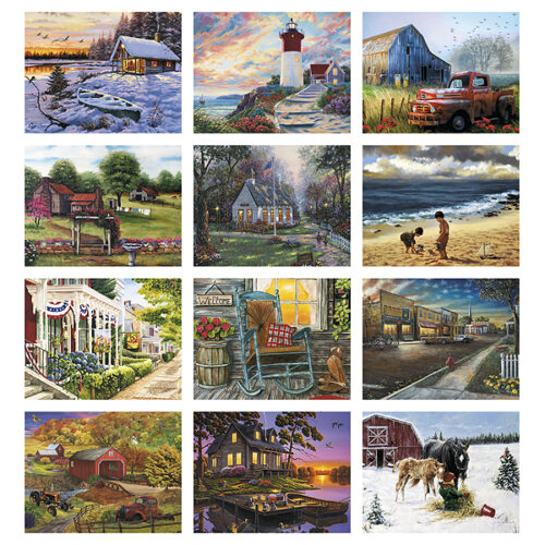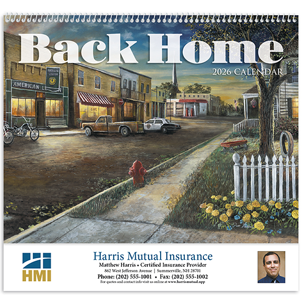 Embrace the warmth of home with the Back Home Appointment Calendar, featuring nostalgic images that bring comfort and familiarity. Manage your days with plenty of space for appointments, reminders, and notes. An excellent choice for promoting your business, your business name, slogan, message, or logo is prominently displayed on each page, ensuring year-long visibility. Spiral-bound for easy flipping and includes holidays and moon phases. This 13 month calendar includes December on the back mount. Also available in stapled style.