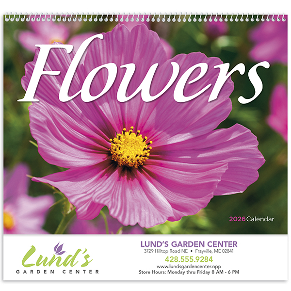 Explore the vibrant beauty of Flowers with this calendar. Each month showcases stunning floral photography that captures the essence of nature’s colors. Printed on quality gloss paper with a UV-coated cover, this 13-month calendar includes December for your planning needs. The price features a 1-color imprint in one location, allowing your business name, message, slogan, or logo to shine throughout the year. Also available in stapled style.