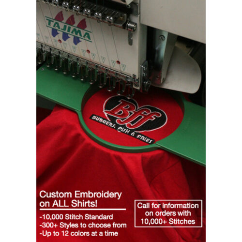 Imprint area: Full Front/Back: 9″ w x 9″ h