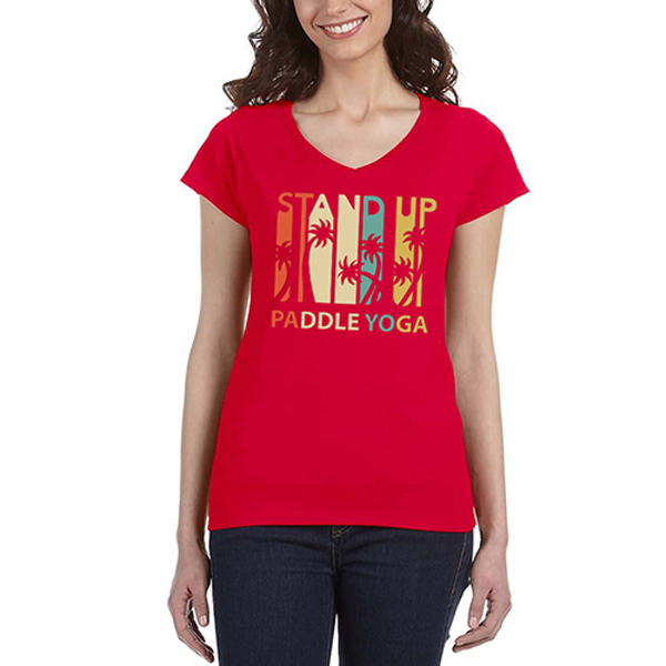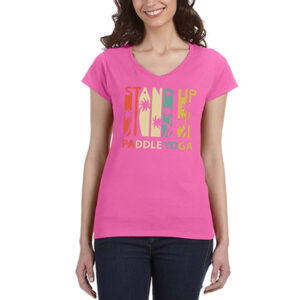 This Gildan Ladies’ SoftStyle® Fitted V-Neck T-Shirt is where comfort meets contour. With a modern cut and soft cotton blend, it’s perfect for retail, team branding, or upscale giveaways. Add your custom artwork and give your audience something stylish and wearable. A V-neckline adds a polished touch to the laid-back design. Your brand stays effortlessly chic and always within reach in their closet.