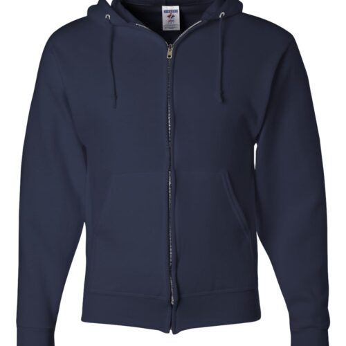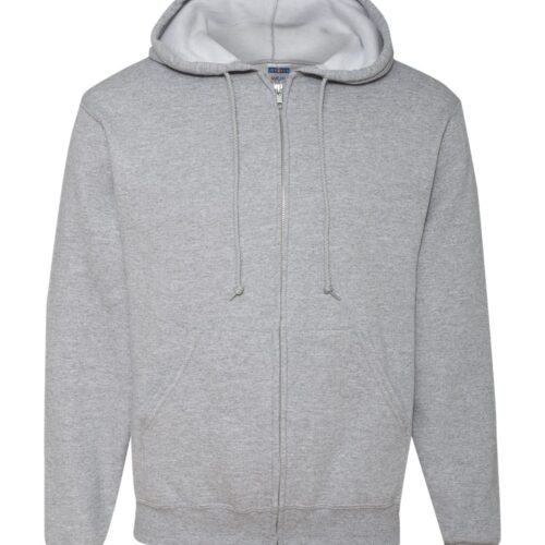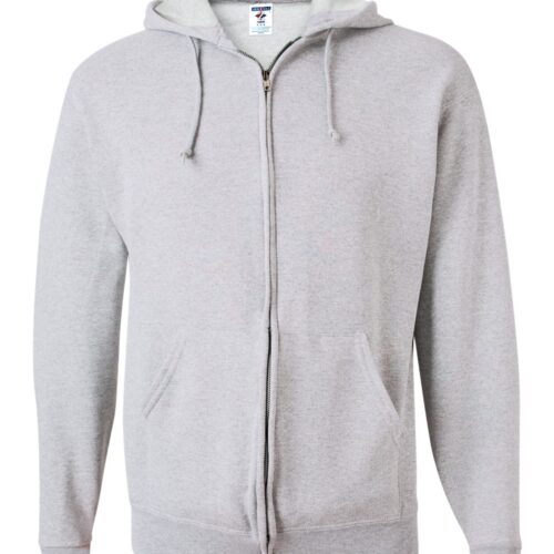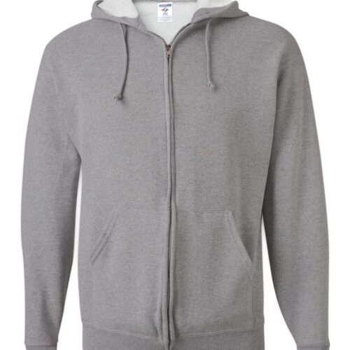 The Jerzees Unisex NuBlend® Full-Zip Hooded Sweatshirt delivers reliable comfort, durability, and excellent branding performance with its 8 oz fleece construction, placing it in the versatile midweight category. Made from a durable 50/50 cotton/polyester blend—while Oxford colors feature a 48/52 cotton/polyester mix—this hoodie uses sustainably sourced USA-grown cotton to provide a soft feel combined with long-lasting strength. The fabric is pre-shrunk to maintain consistent sizing and features NuBlend® pill-resistant fleece that helps the garment maintain a clean, professional look over time. High stitch density creates a smooth printing canvas, allowing your company logo, team name, slogan, or promotional artwork to appear crisp, bold, and highly professional.