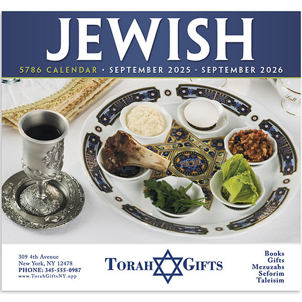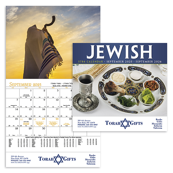 Celebrate Jewish culture and traditions with the Jewish Appointment Calendar. Featuring vibrant and meaningful images, this calendar showcases the beauty of Jewish heritage and holidays. Keep track of your schedule with plenty of space for notes, reminders, and appointments. Perfect for promoting your business, your business name, slogan, message, or logo will be displayed on each page, providing year-round exposure. Includes holidays and moon phases. This 13-month calendar includes December on the back mount.