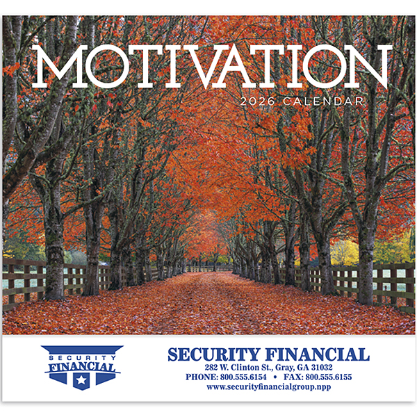 Stay motivated with the Motivation Appointment Calendar. Featuring inspiring quotes and images that encourage a positive mindset, this calendar will help you stay focused on your goals all year long. Keep track of your schedule with plenty of space for notes, reminders, and appointments. Perfect for promoting your business, your business name, slogan, message, or logo will be displayed on each page, providing year-round exposure. Includes holidays and moon phases. This 13-month calendar includes December on the back mount.