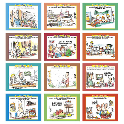 Embrace the wit and wisdom of Murphy’s Law with the Murphy’s Law Appointment Calendar. Featuring humorous and quirky illustrations that capture the essence of life’s unpredictable moments, this calendar will bring a smile to your face every month. Keep track of your schedule with plenty of space for notes, reminders, and appointments. Perfect for promoting your business, your business name, slogan, message, or logo will be displayed on each page, providing year-round exposure. Includes holidays and moon phases. This 13-month calendar includes December on the back mount.