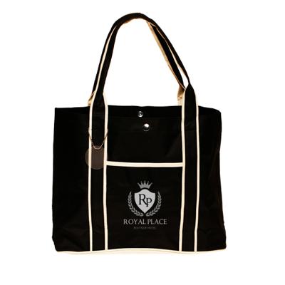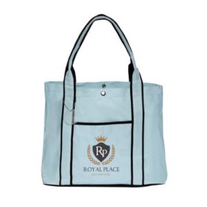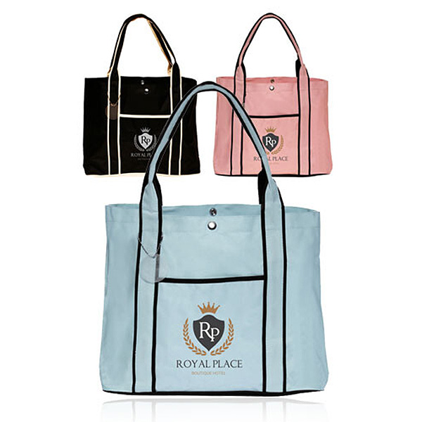Carry your brand with this eye catching premium fashion tote bag! A marketing essential, this 12.125″ x 16.25″ tote with a 4.875″ gusset is made of 600 denier polyester. It features a snap fastener button, an outside 7.05″ x 7.625″ pocket and a tough black bottom. Available in multiple colors, be sure to add a silkscreen imprint of your logo for brand awareness. Both durable and reusable, use this convenient fashion tote as a show stopping tradeshow giveaway!
