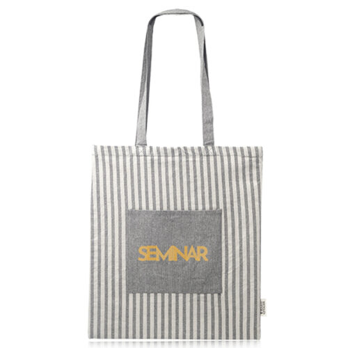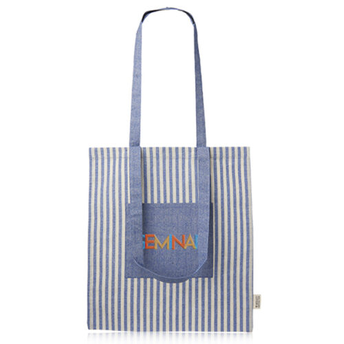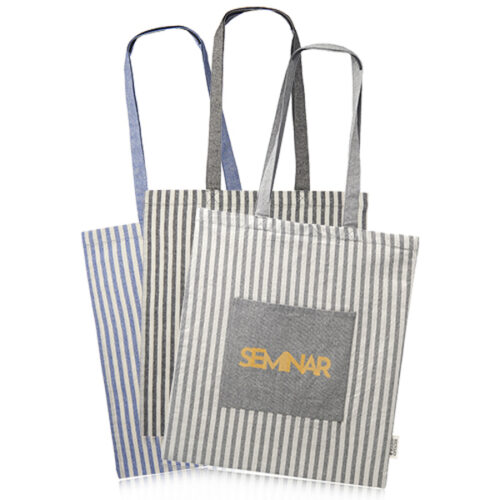 Your message gets a playful upgrade with Recycled Striped Cotton Tote Bags, featuring soft recycled fabric and fun horizontal stripes. The large imprint space is perfect for full-color logos or slogans. Lightweight and foldable for everyday carry. Ideal for beach giveaways, retail packaging, or sustainability fairs. These bags bring cheer to your branding with just the right mix of color and conscience.