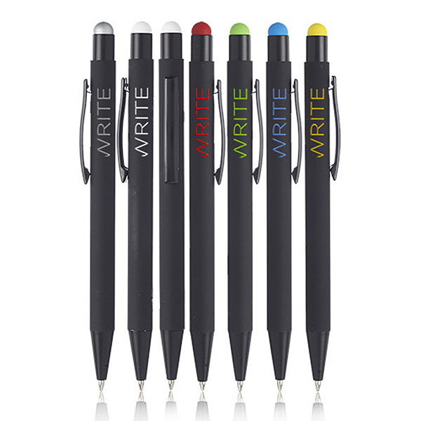 Your brand name or logo is bound to pop right off the barrel of this promotional pen! Made of metal, this pen features a rubberized color stylus and black ink with 1mm tip for a smooth writing experience. The laser engraving color will match the trim color. Move from paper to touchscreen seamlessly with this pen! A great giveaway for tradeshows, seminars and more.