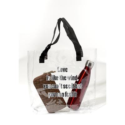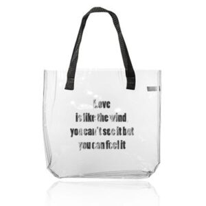 Carry everything you need and find your items easily with these clear plastic tote bags! The design of these tote bags are perfect for sports fans heading to the stadium, easy grab-and-go beach handbags, running errands and many more situations where carrying items is a necessity. Each tote measures 6″ x 12″ x 12″ and is made of durable PVC for long-lasting use. Your price includes a one color imprint, perfect for putting your brand name or logo on display wherever these bags go!