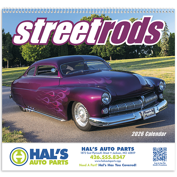 Enjoy the classic style of Street Rods with this 13-month calendar. Each month features stunning images of classic street rods that will appeal to any car enthusiast. Printed on quality gloss paper with a UV-coated cover, this calendar includes December for your planning needs. The price features a 1-color imprint in one location, allowing your business name, message, slogan, or logo to shine throughout the year. Also available in stapled style.