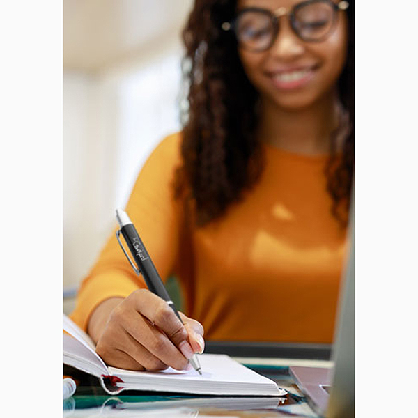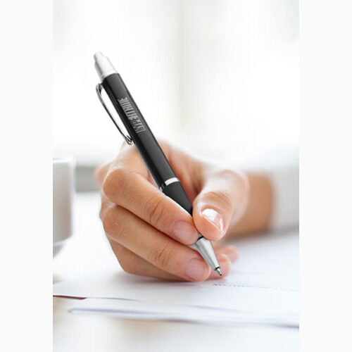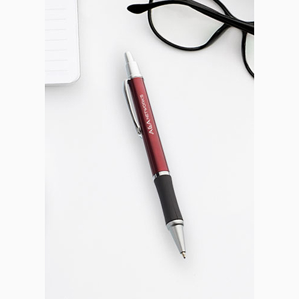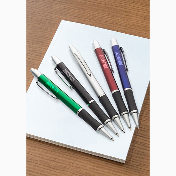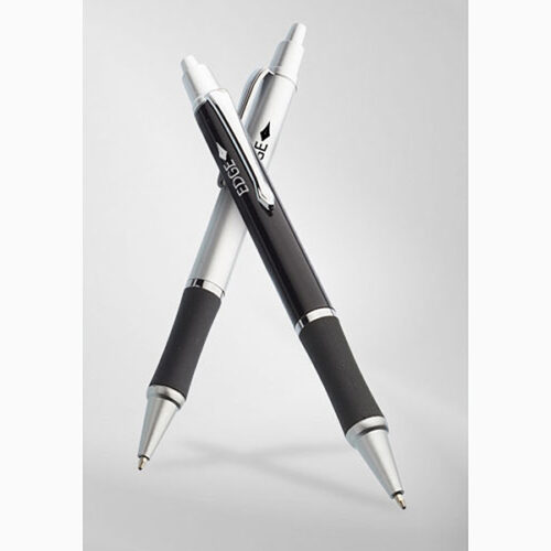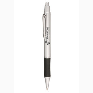 Pick it and click it! The Easton grip pen has an elegant design with silver accents, a black rubber grip and a ballpoint tip. Available with black or blue ink and in assortment of colors, this retractable 0.6″W (including clip) x 5.625″L pen spreads your company logo or name on the one or two color imprint surface. This is a great promotional giveaway to spread the word at tradeshows, conferences or around the office. Point customers in the “write” direction!