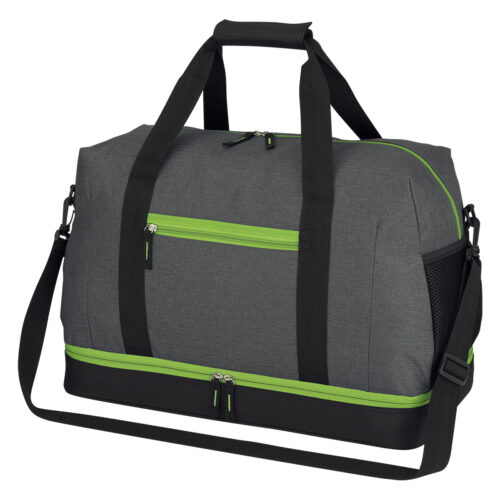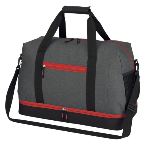 • Double Zippered Drop-Bottom Compartment