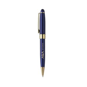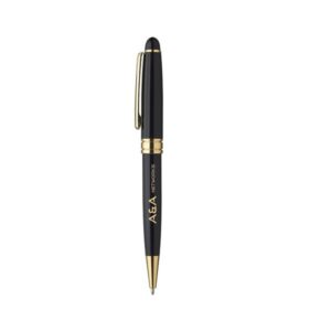 Ensure your customers, employees and vendors keep you on their mind whenever they’re scrambling to find a pen. These handsome 6″ x 0.6″ ultra executive metal pens have a colored barrel, gold pocket clip, and shiny gold colored accents. Your company logo or message can be silkscreened or laser engraved onto the barrel. These pens make a great and economical promo item for banks, tradeshows, insurance companies or even for guests who stop by the office.