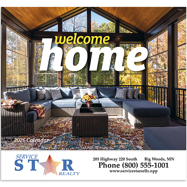 Celebrate the warmth of home with the Welcome Home calendar. Each month features cozy and inviting images that make you feel at home, perfect for bringing comfort to any room. Printed on high-quality gloss paper with a durable UV-coated cover, this 13-month calendar includes December for your planning needs. The price features a 1-color imprint in one location, allowing your business name, message, slogan, or logo to shine throughout the year. Also available in spiral and window style.